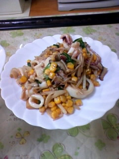 った。コーンが食感のアクセントになってたよー。エリンギの他にも