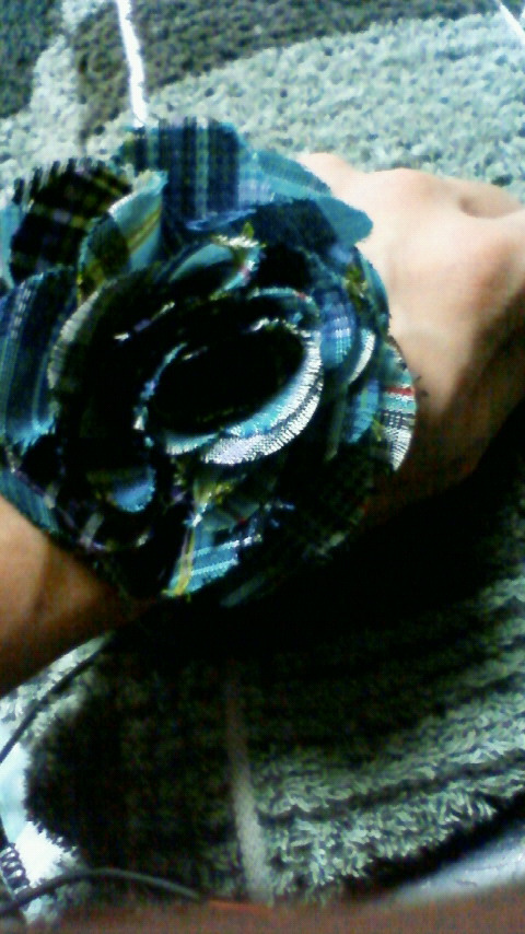 お気に入りのかわいいシュシュ。結構前に買ってたんだけど初めてつけるのは