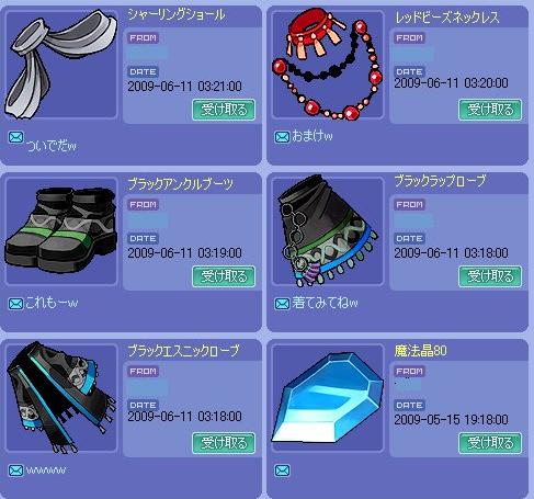 右下の課金昌は自分で送ったもの。使い道が思い出せないw80とか使い道が確実